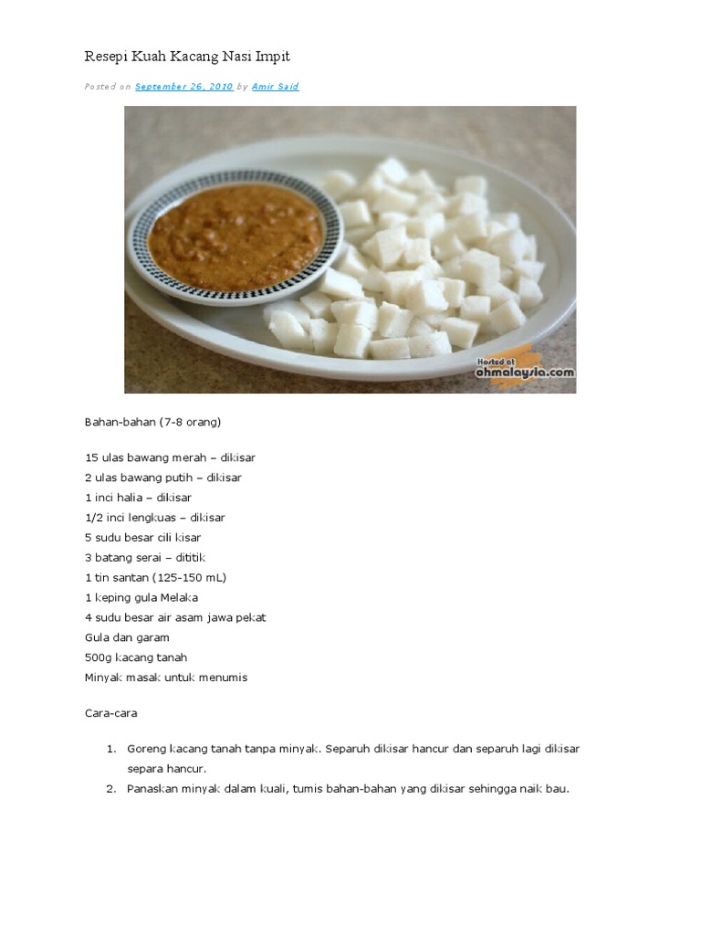 Sekarang ni dah banyak cara buat nasi impit yang *resepi nasi impit tanpa plastik ini dikongsikan oleh puan norfadilah ibrahim menerusi facebook. Walaupun tidak setinggi nasi putih biasa, namun proses penggorengan dari kentang ini menambah kadar lemak dan pada akhirnya menambah kadar kalori yang ada pada. Resepi kuah kacang nasi impit terengganu ini merupakan salah satu cara memasak nasi himpit beserta kuah kacang yang sememangnya terkenal di terengganu. .551 kalori lemang (6 potong kecil) = 206 kalori nasi impit (6 ketul) bersama kuah kacang = 400 kalori lontong( 1mangkuk berisi 6 ketul nasi impit potongan kiub+ 2 senduk kuah) = 450 kalori sate. Masa raya hari tu tak puas makan nasi impit kuah klate ni. My first tried for this recipe! Fuhh dahsyat hebat rasanya bila bersarapan dengan nasi kapit kuah kacang mak. Salam hari isnin semua.adeh lama tul aku tak mengupdate di sini.org maleh.asek ke open house sana sini jek.kahkah. Dapatkan resipi penuh nasi impit dan kuah kacang di: Assalamualaikum wbt & salam sejahtera. Mari fikir dulu sebelum makan. Malamnya emak masak kuah kacang yang sangat lazat baunya. Dan menjadikan hidup saya untuk hari itu tidak lagi puzzling seraya meneka dalam kesamaran.