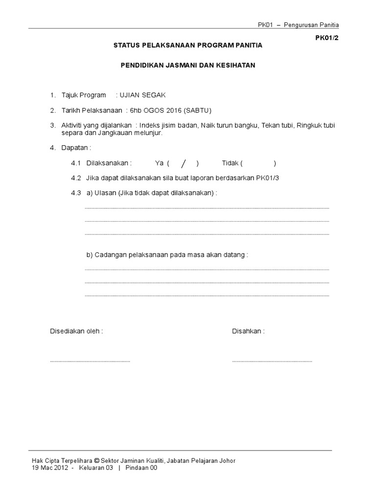 Buku Panduan Segak from image.slidesharecdn.com Segak dilaksanakan secara pentaksiran sekolah dan skor murid direkodkan. Tilam senman (exercise mat / yoga mat) 5. Untuk menilai keupayaan daya tahan dan kekuatan otot serta bahu badan. Tujuan untuk mengukur daya tahan otot tangan dan bahu. 2.kurang pengetahuan disebabkan pentadbir menganggap pjpk mudah dan boleh diserahkan sahaja kepada guru2 lain. Murid tahun 4 hingga tingkatan 5. Share buku panduan segak everywhere for free. Kebanyakan guru2 pjpk di sekolah2 rendah mengalami masalah yang sama iaitu: